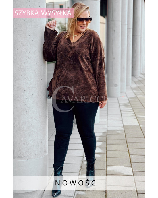 VELUTO – SZTRUKSOWY SWETEREK-BLUZA Z DEKOLTEM V