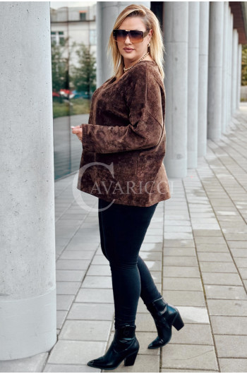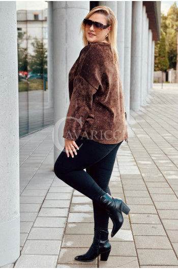 VELUTO - Sztruksowa bluzka-sweterek kszyk na co dzień w kolorze brązowym