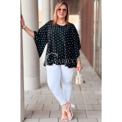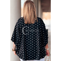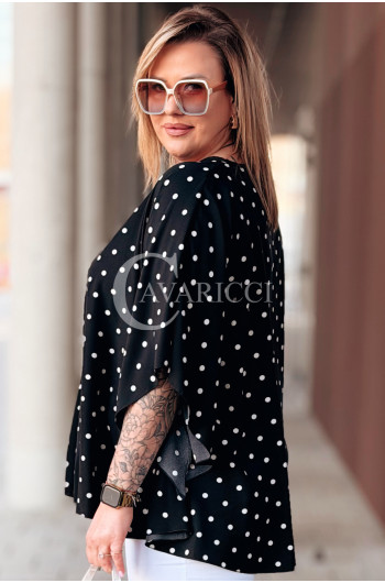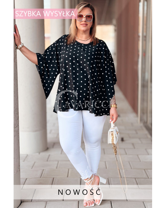 DONATELLE - Lekka bluzka damska w groszki modny luźny krój w kolorze czarnym
