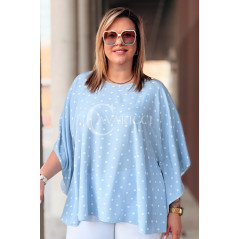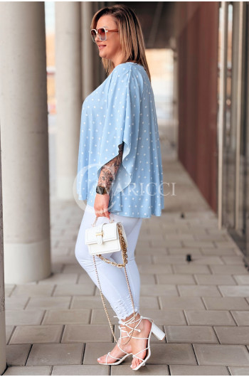 DONATELLE - Lekka bluzka damska w groszki modny luźny krój w kolorze błękitnym