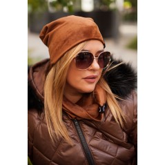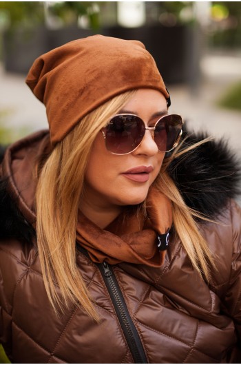 WELUROWY Komplet - czapka i komin w kolorze brązowym