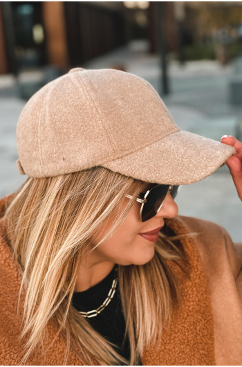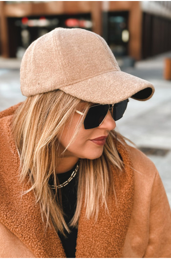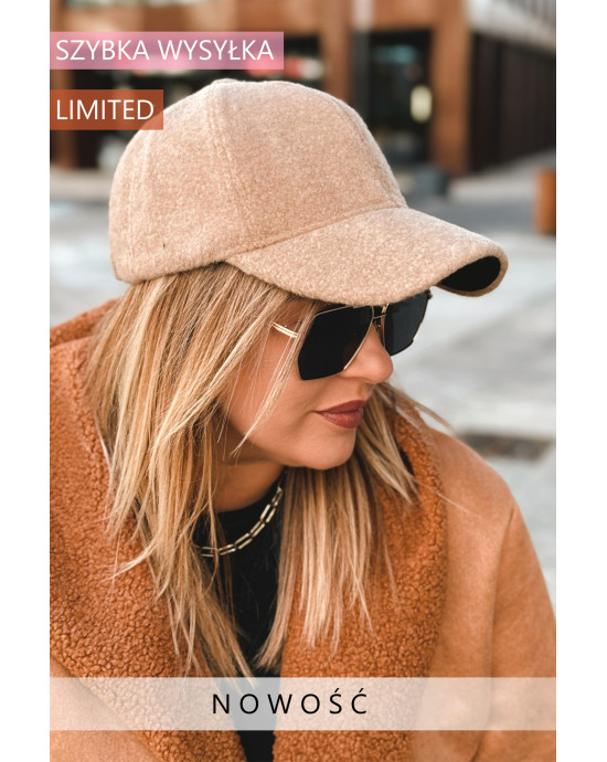 CZAPKA z daszkiem typu boucle w kolorze beżowym