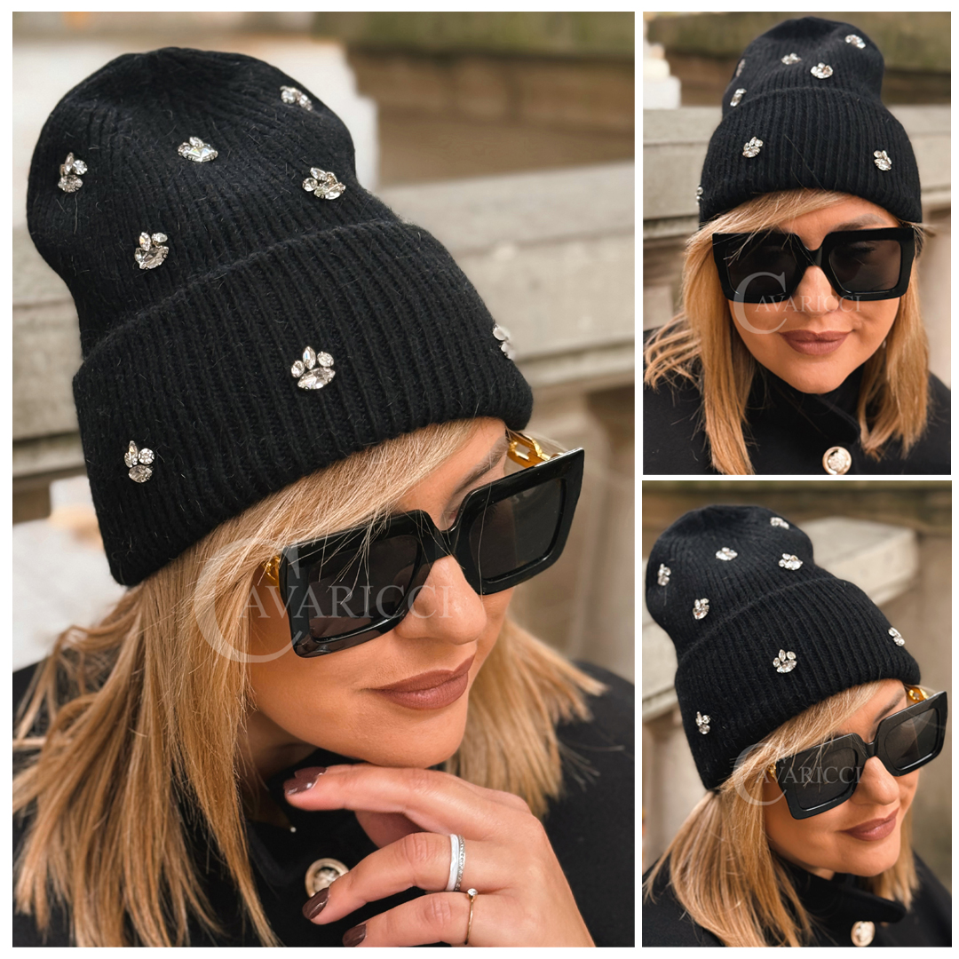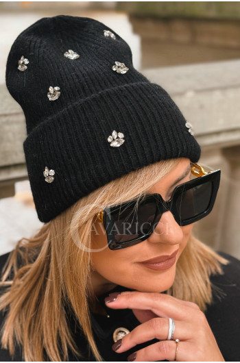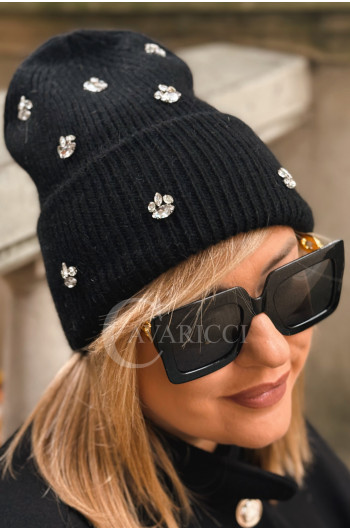 Czapka NICOLE to idealny wybór dla kobiet, które kochają prostotę połączoną z elegancją 💎 Jej klasyczny, czarny kolor pasuje do wszystkiego, a subtelne aplikacje z kryształków dodają jej wyjątkowego uroku 💫