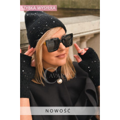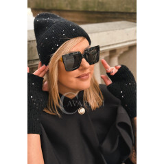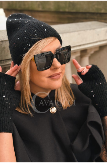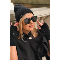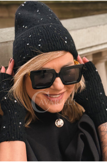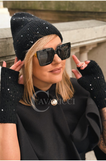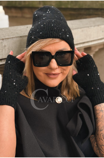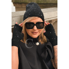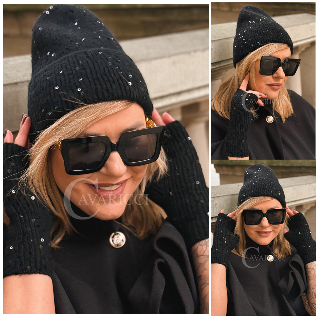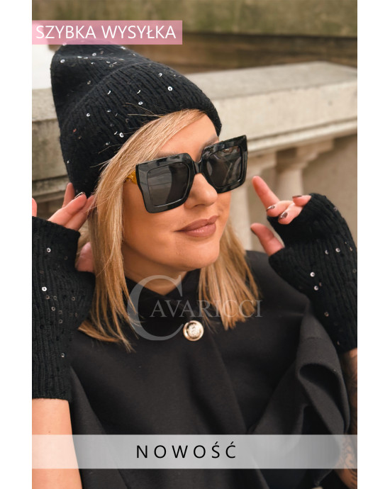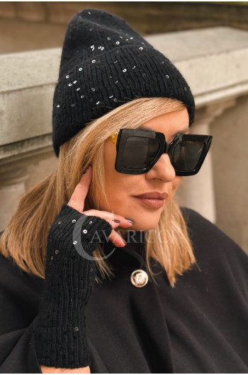 ZESTAW “LIVIA” – czapka + minetki z cekinami, kolor czarmy
