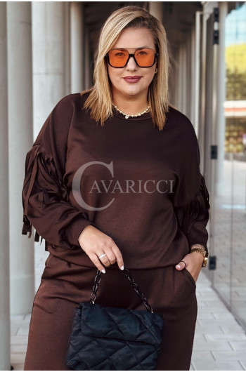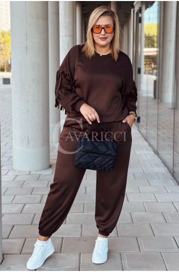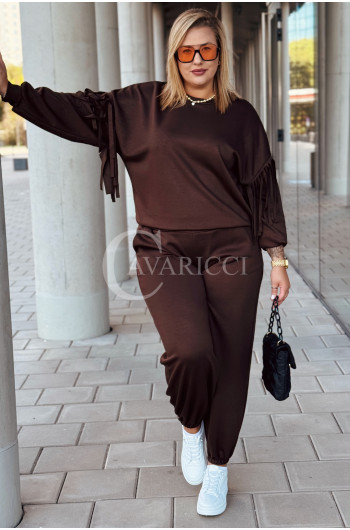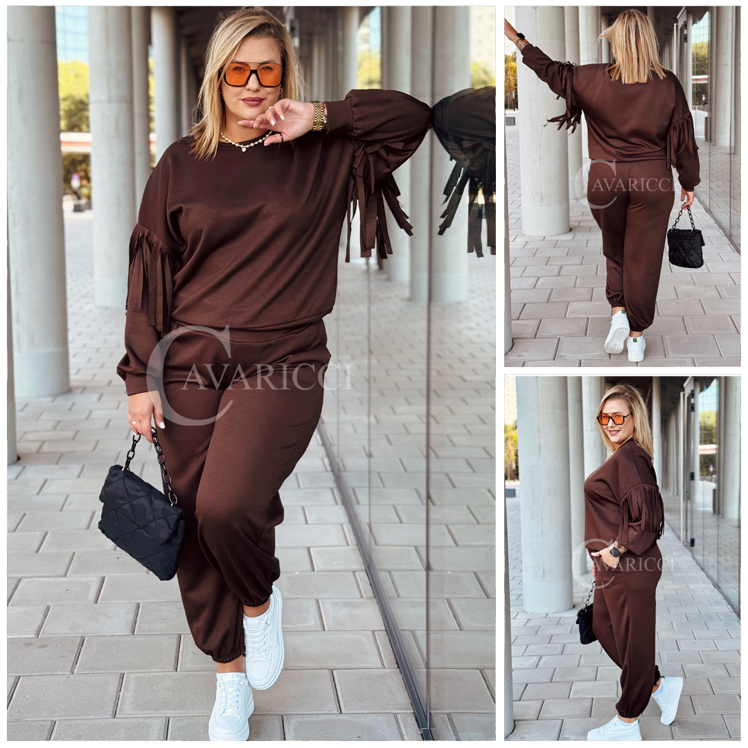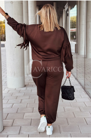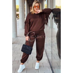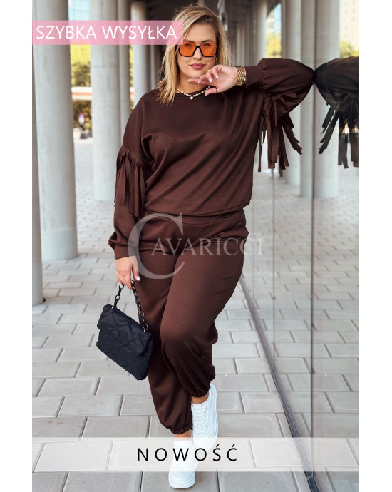 DOVIGO - Boho komplet dresowy z frędzelkami w kolorze brązowym