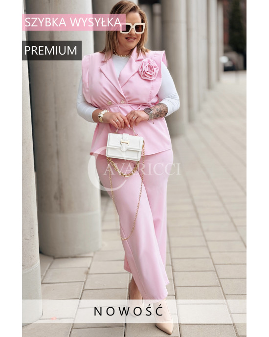 Komplet ISABELLA Premium – Kamizelka z Różą i Spodnie w Kolorze Pudrowego Różu