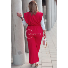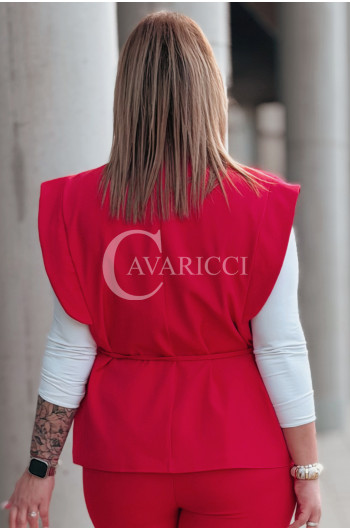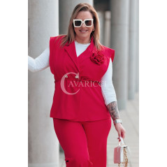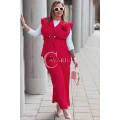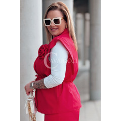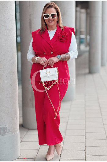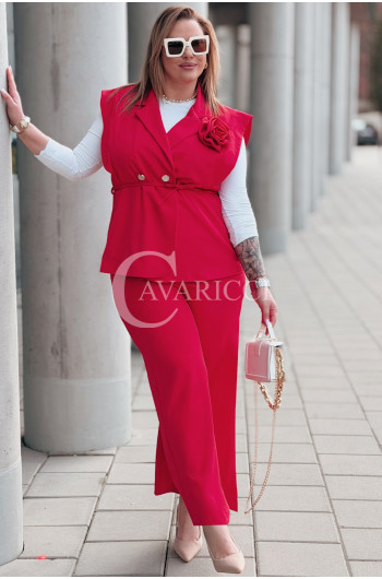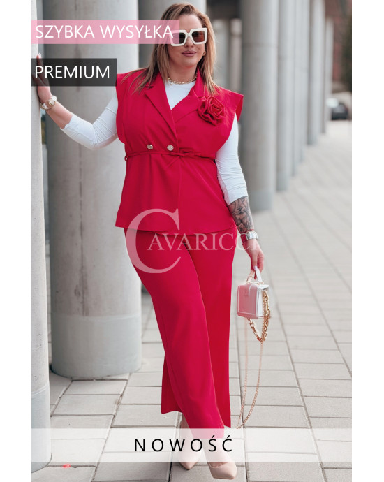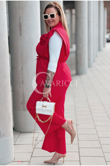 Komplet ISABELLA Premium – Kamizelka z Różą i Spodnie w Kolorze Czerwonym