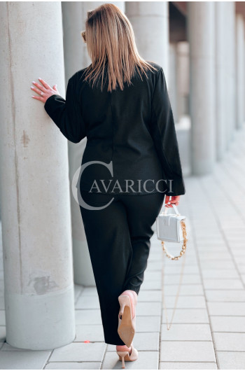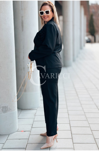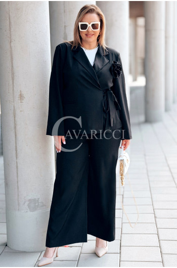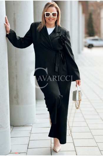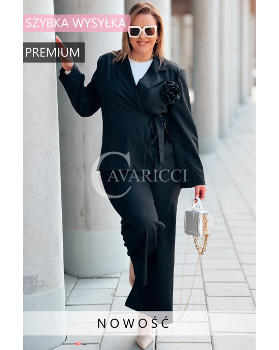 Garnitur VITTORIA Premium – Wiązana Marynarka na Podszewce z Odpinaną Różą w kolorze Czarnym