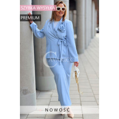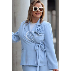 Garnitur VITTORIA Premium – Wiązana Marynarka na Podszewce z Odpinaną Różą w kolorze Błękitnym