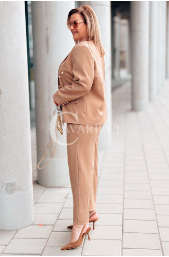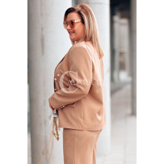 Garnitur STELLA Premium – Złote Guziki, Poduszki na Ramionach w kolorze Karmelowym