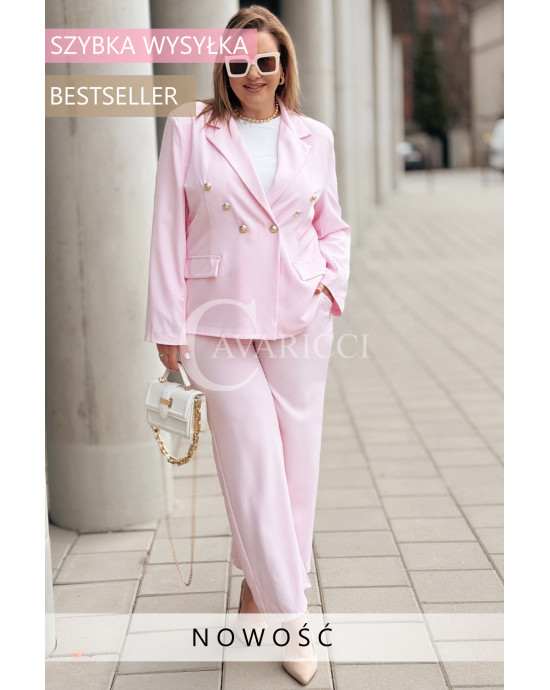 Garnitur STELLA Premium – Złote Guziki, Poduszki na Ramionach w kolorze Różowym