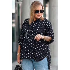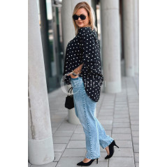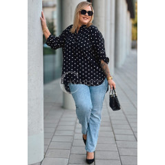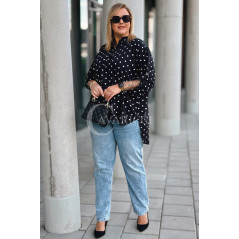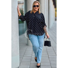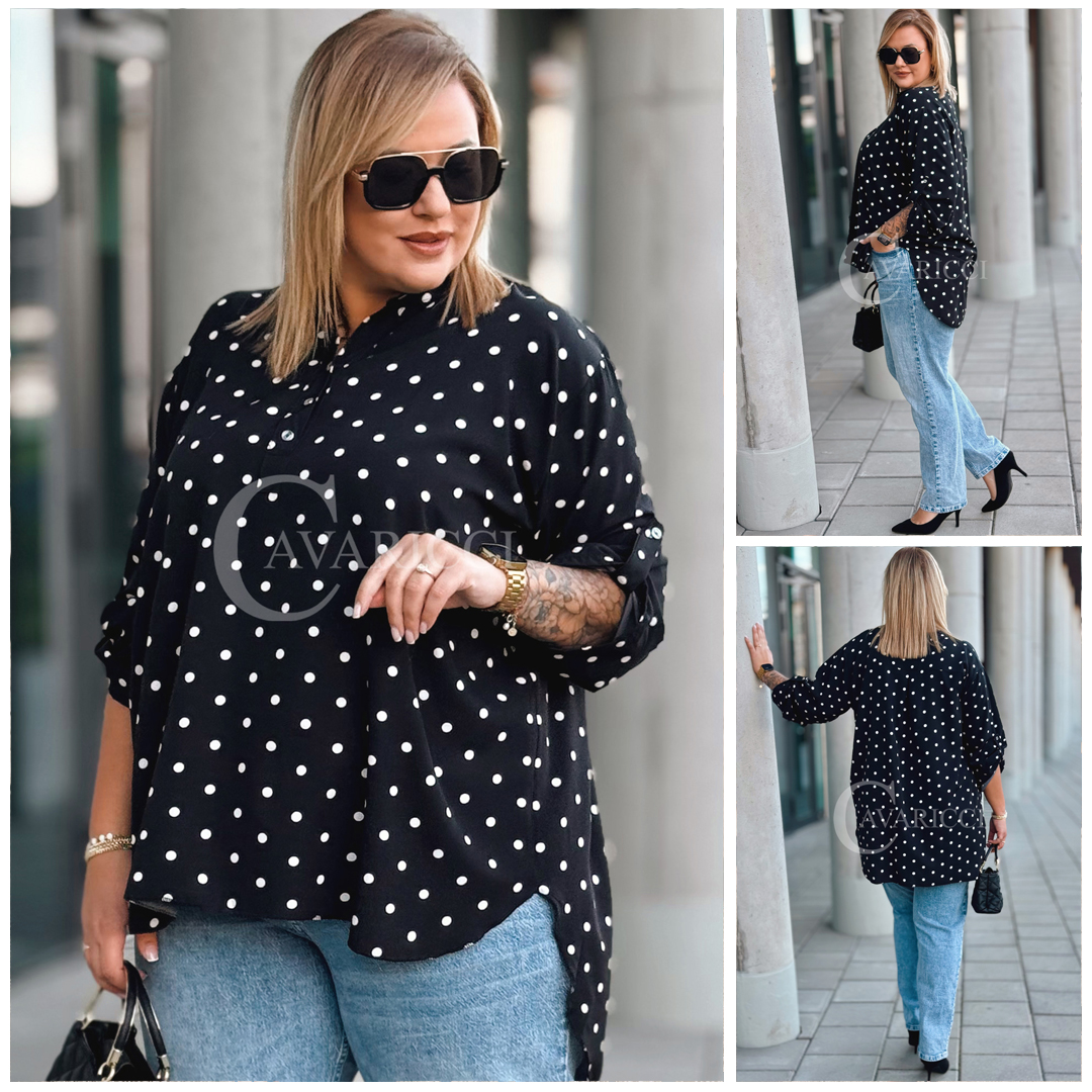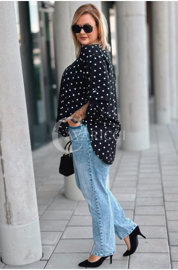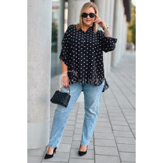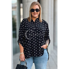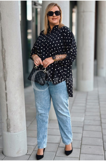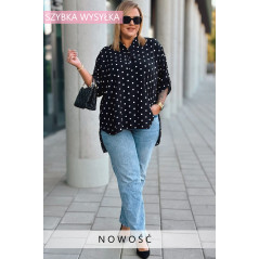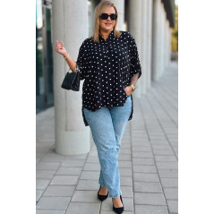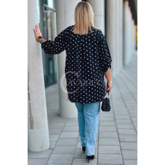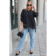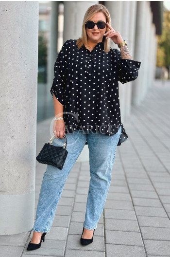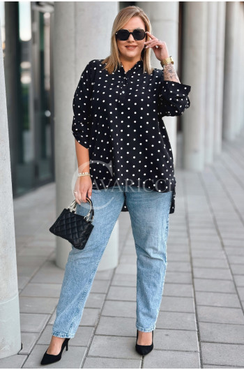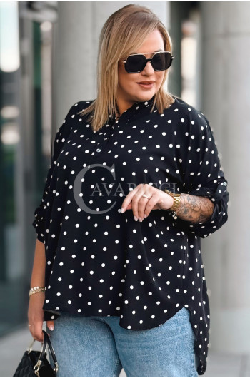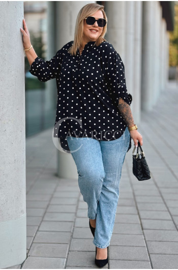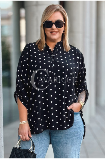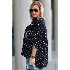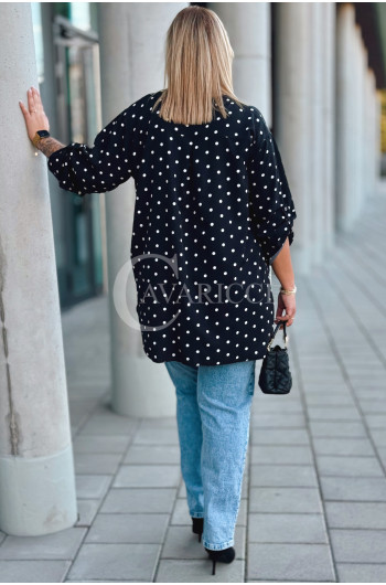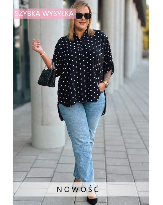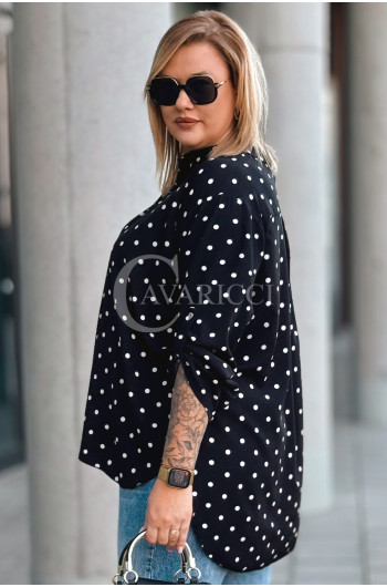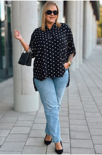 LORETTO - Modna lekka trapezowa koszula z guziczkami w groszki w kolorze czarnym