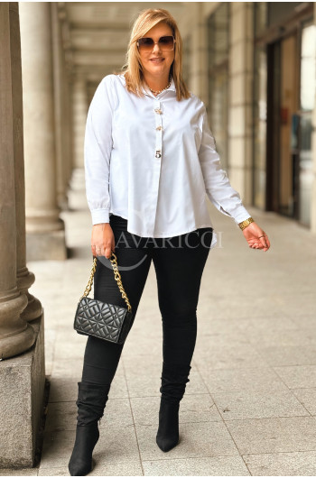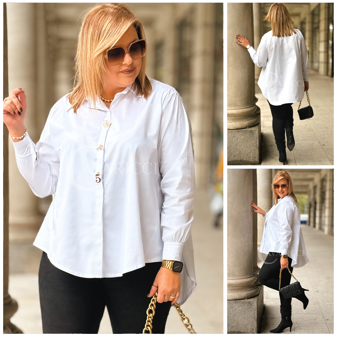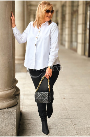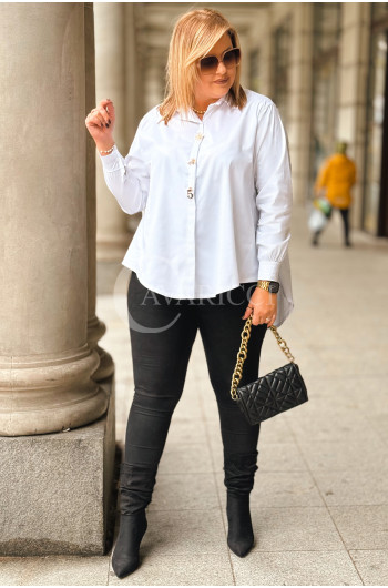 JULIETTA - klasyczna koszula w luksusowej odsłonie ze złotymi spinkami kolor biała