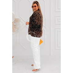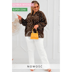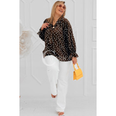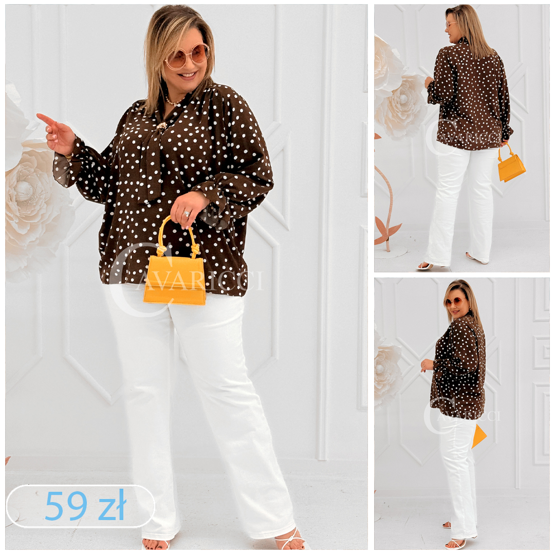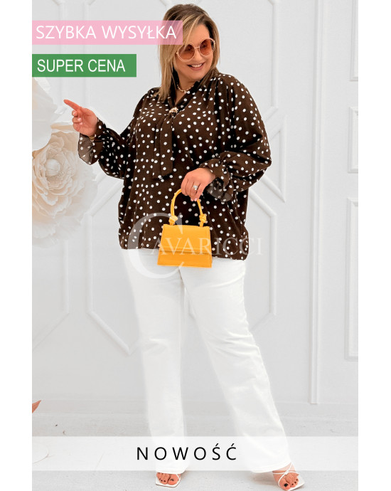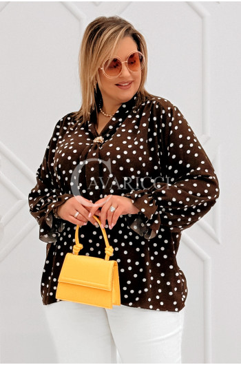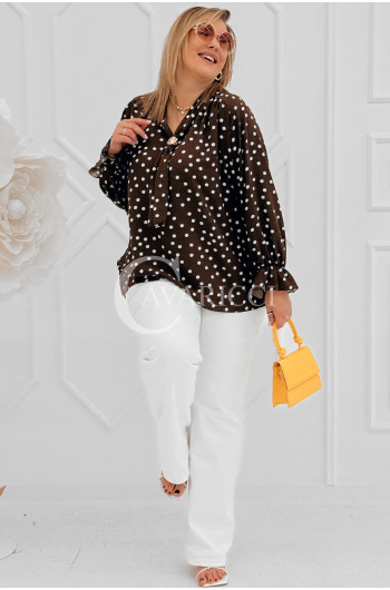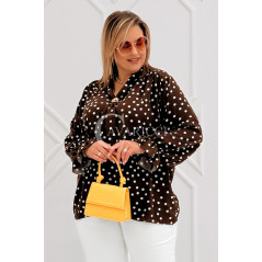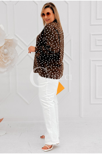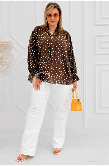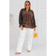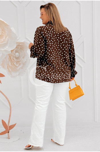 SOLIA - Elegancka koszula w groszki z ozdobnym kołnierzykiem w kolorze brązowym