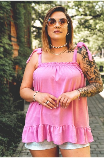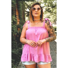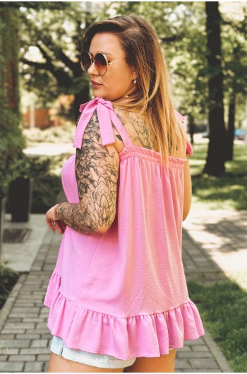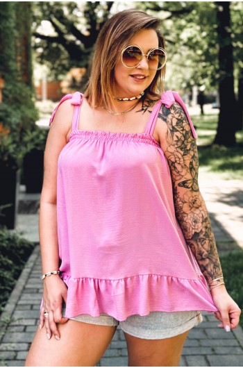 LOLA - Trapezowa bluzka na naramkach w kolorze różowym