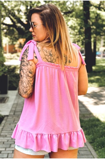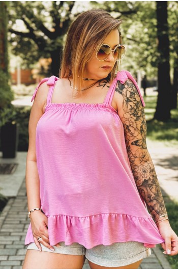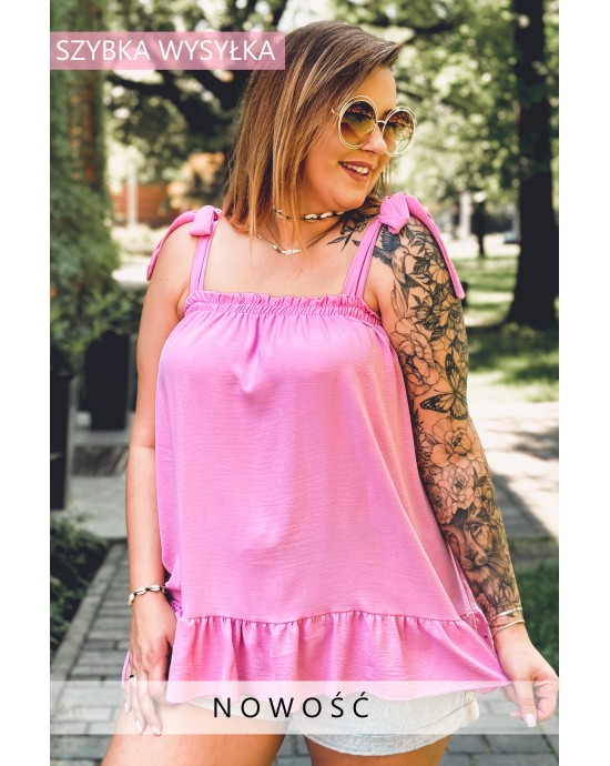 LOLA - Trapezowa bluzka na naramkach w kolorze różowym