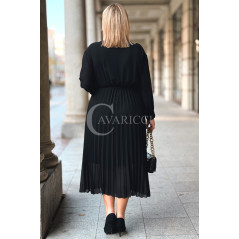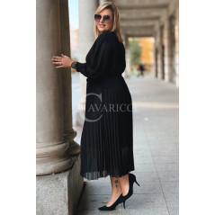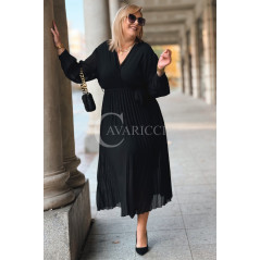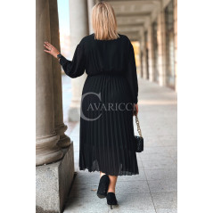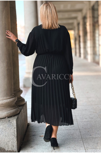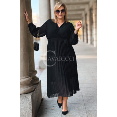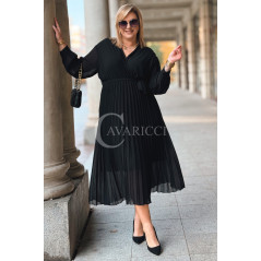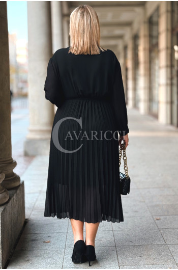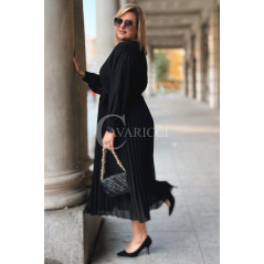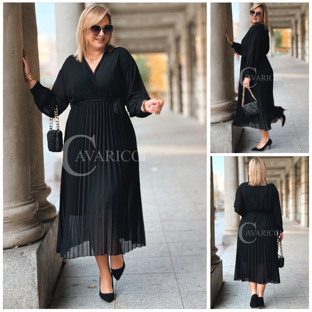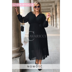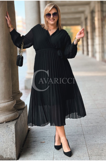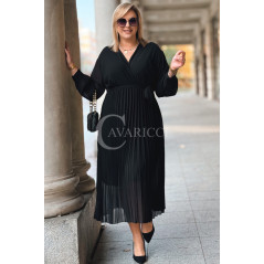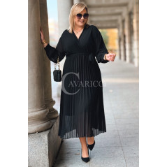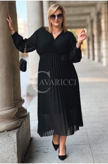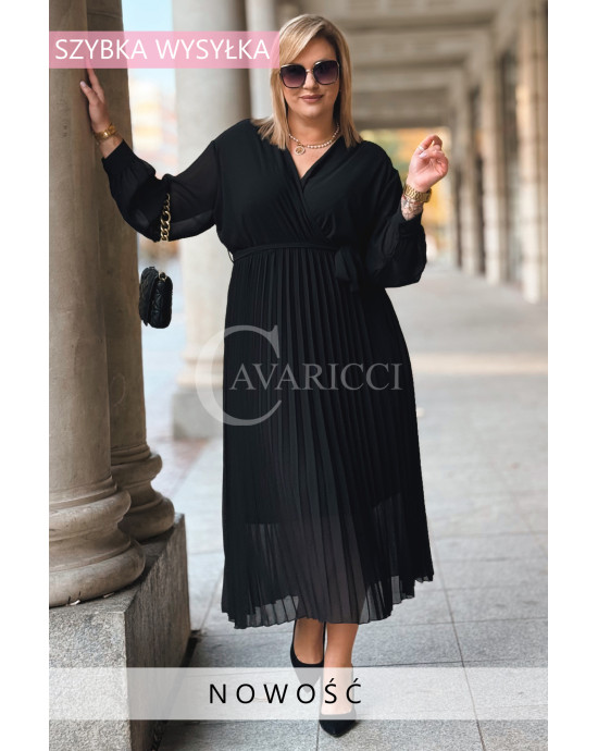 POLLY – długa plisowana sukienka z kopertowym dekoltem i szyfonowymi rękawami w kolorze czarnym