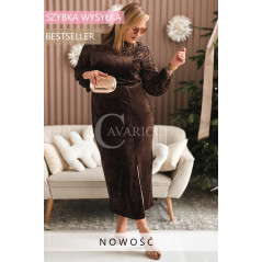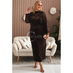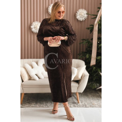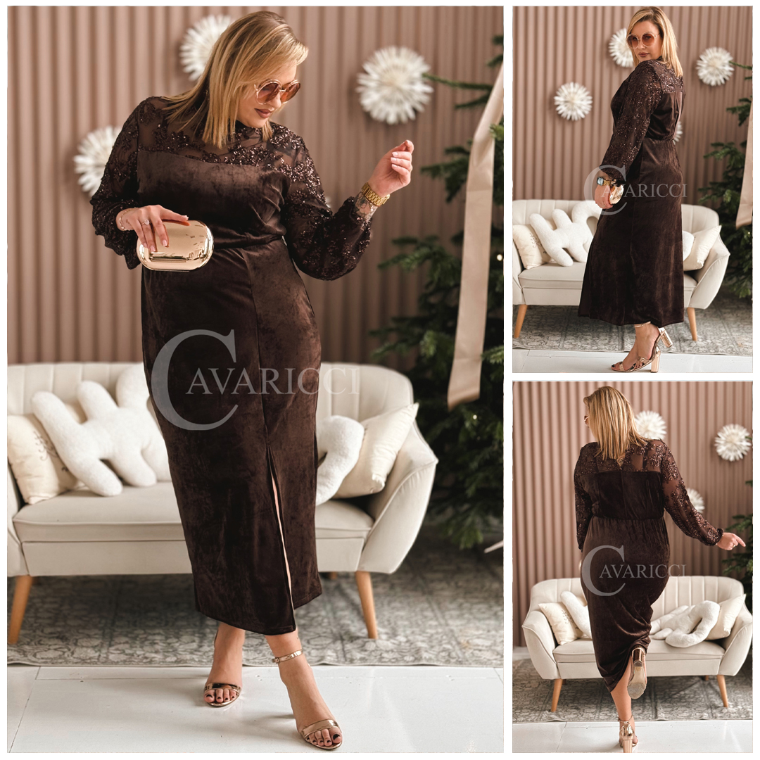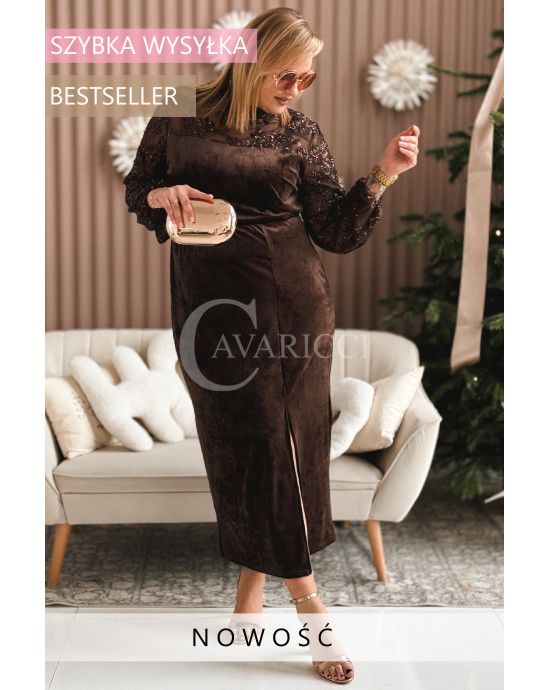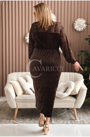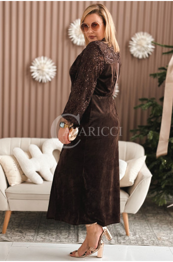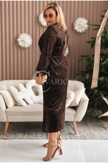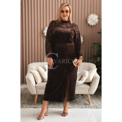 ELISABETTA - Elegancka welurowa sukienka z koronką w kolorze brązowym