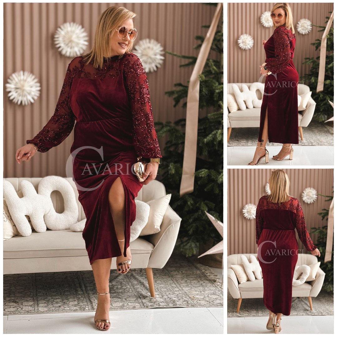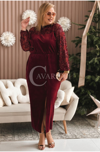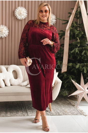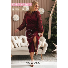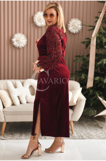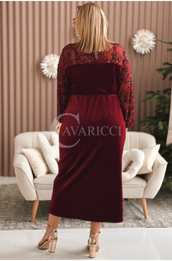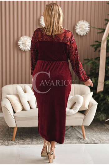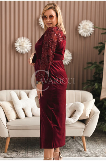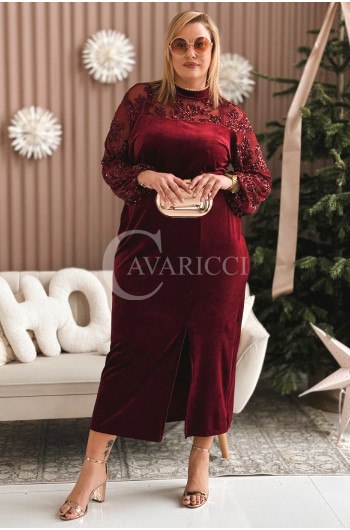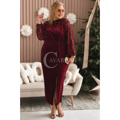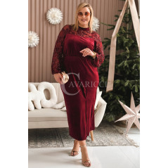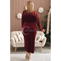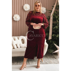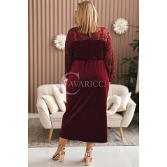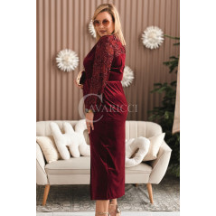 ELISABETTA - Elegancka welurowa sukienka z koronką w kolorze bordowym