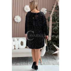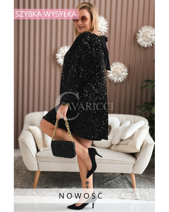 FILOMENA - Cekinowa magiczna sukienka z ozdobnym wiązaniem na plecach w kolorze czarnym