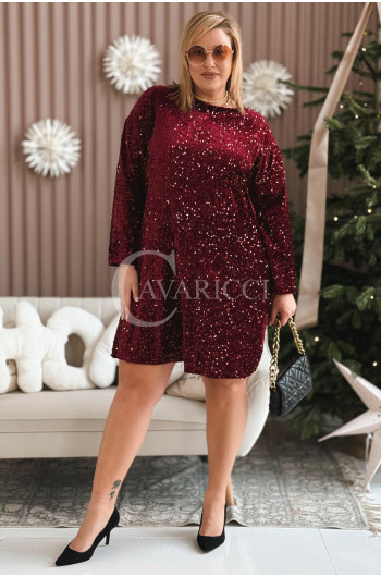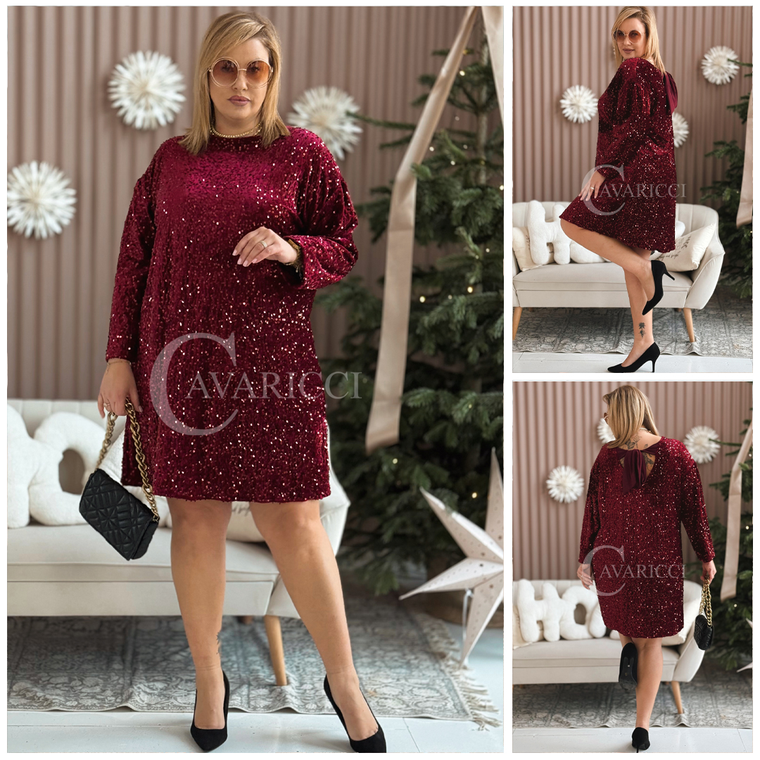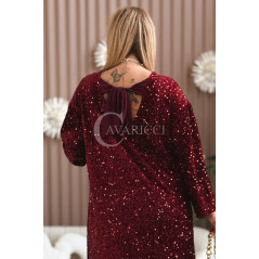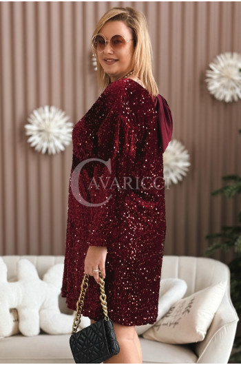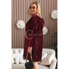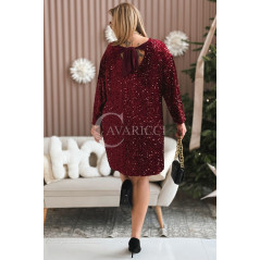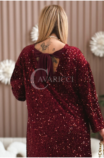 FILOMENA - Cekinowa magiczna sukienka z ozdobnym wiązaniem na plecach w kolorze bordowym