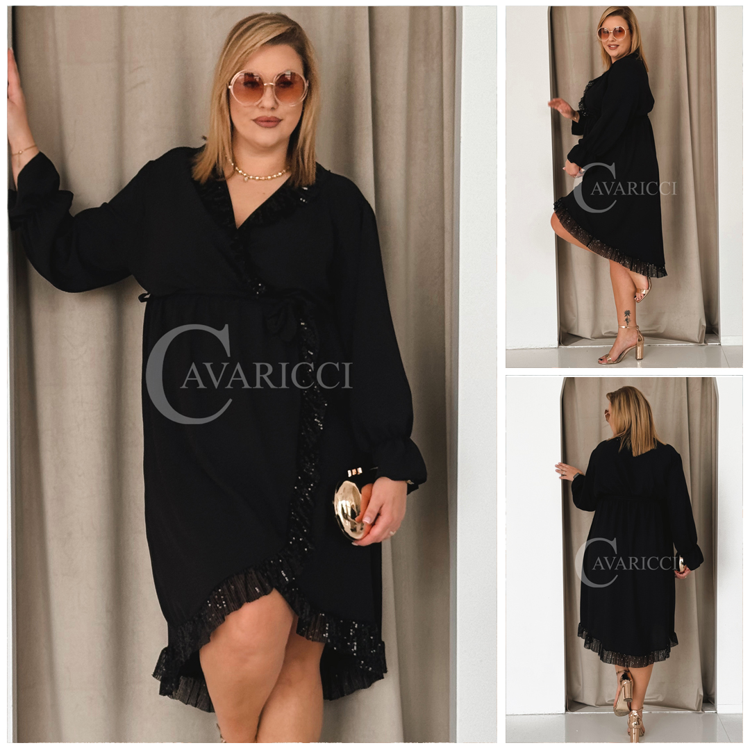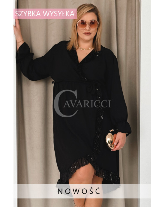 CELESTINA - asymetryczna sukienka z cekinowymi falbankami w kolorze czarnym