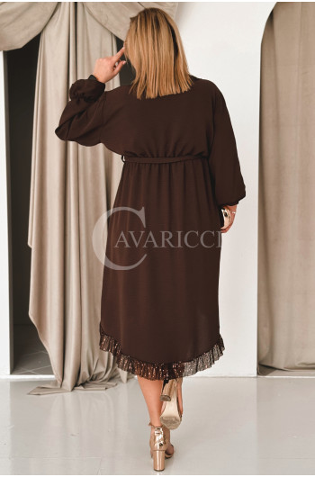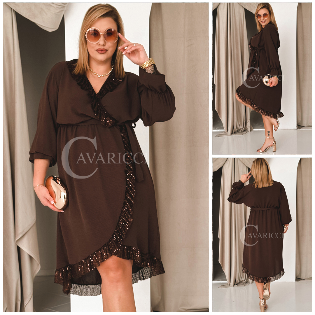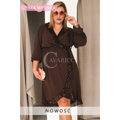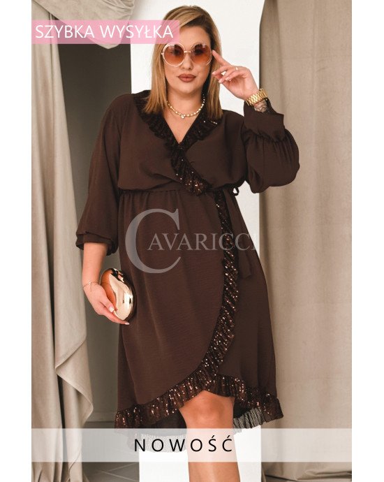 CELESTINA - asymetryczna sukienka z cekinowymi falbankami w kolorze brązowym