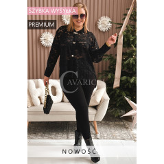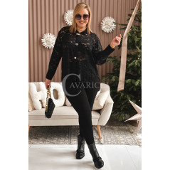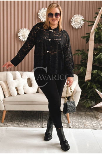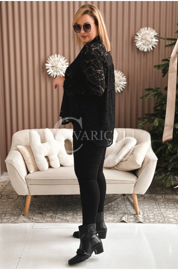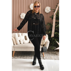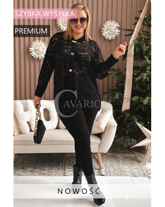 LUCINA - Koronowa koszula pełna szyku z modnymi broszkami w kolorze czarnym