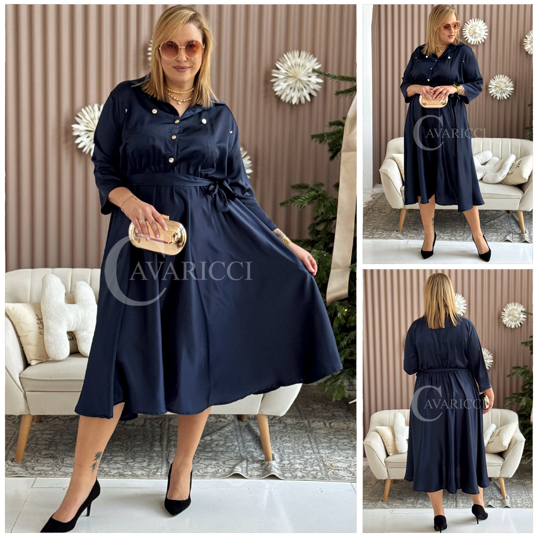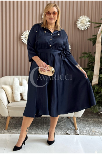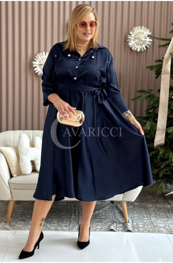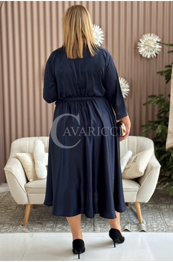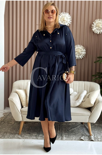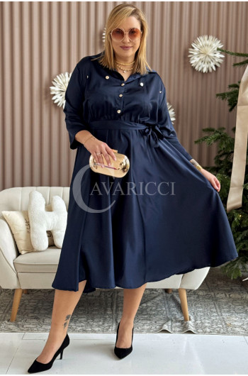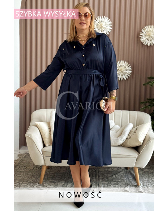 FIORELLA - Elegancka i szykowana satynowa szmizjerka w kolorze granatowym