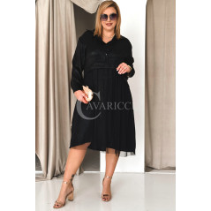 💃 CASSANDRA – BŁYSZCZĄCA SUKIENKA W STYLU KOSZULOWYM Z TIULEM