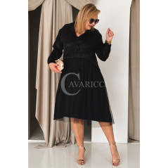 CASSANDRA - elegancka, szykowna i nowoczesna metaliczna sukienka z tiulem w kolorze czarnym