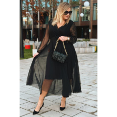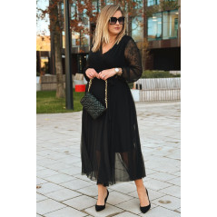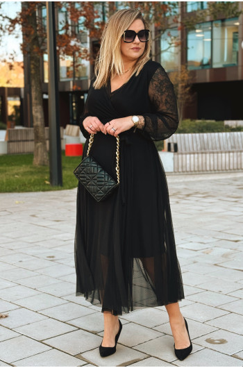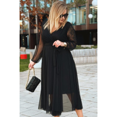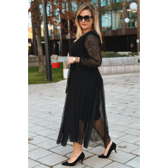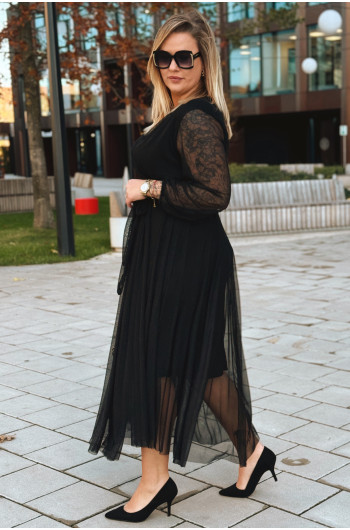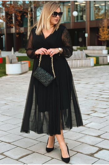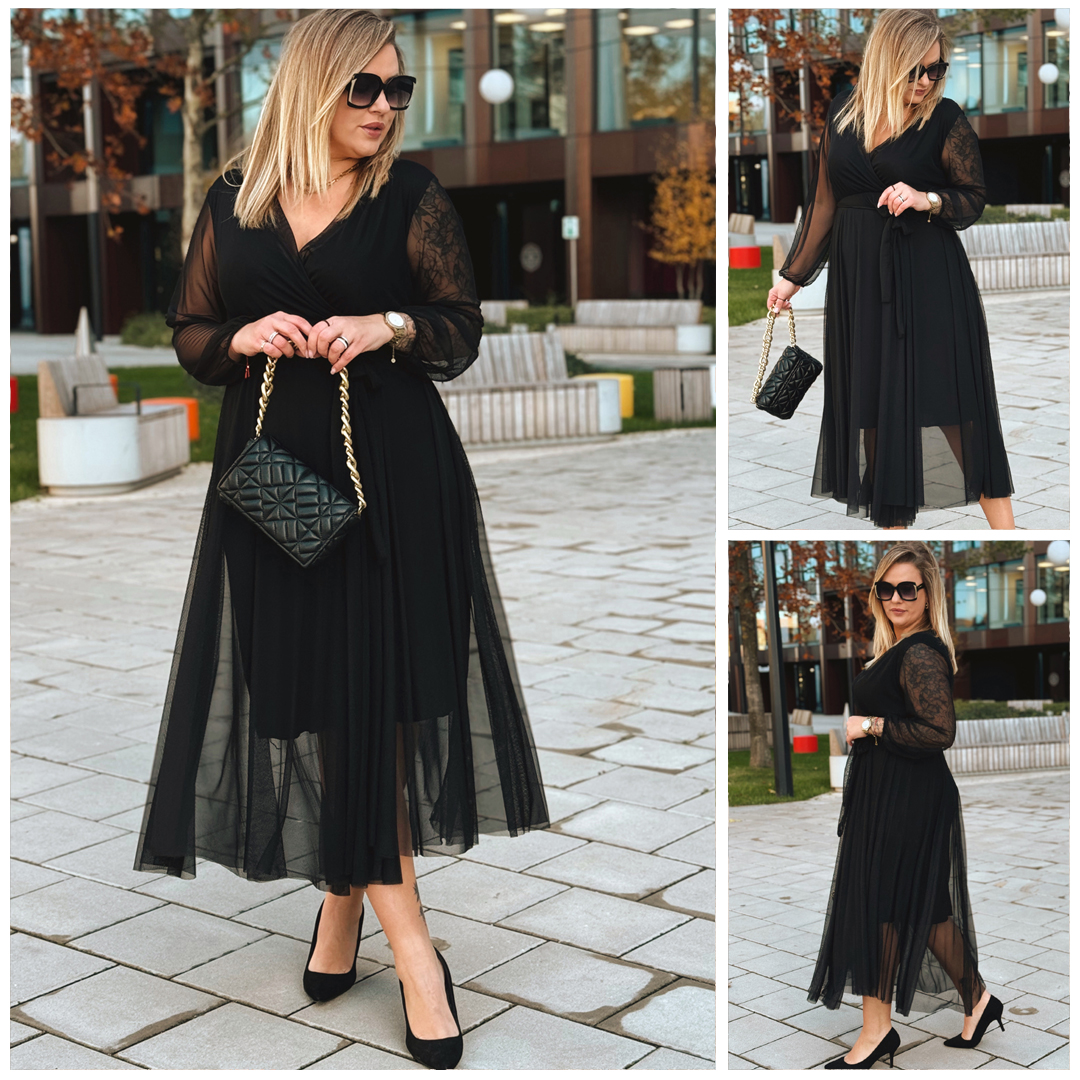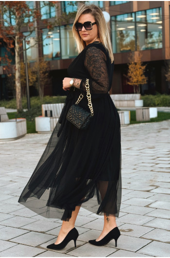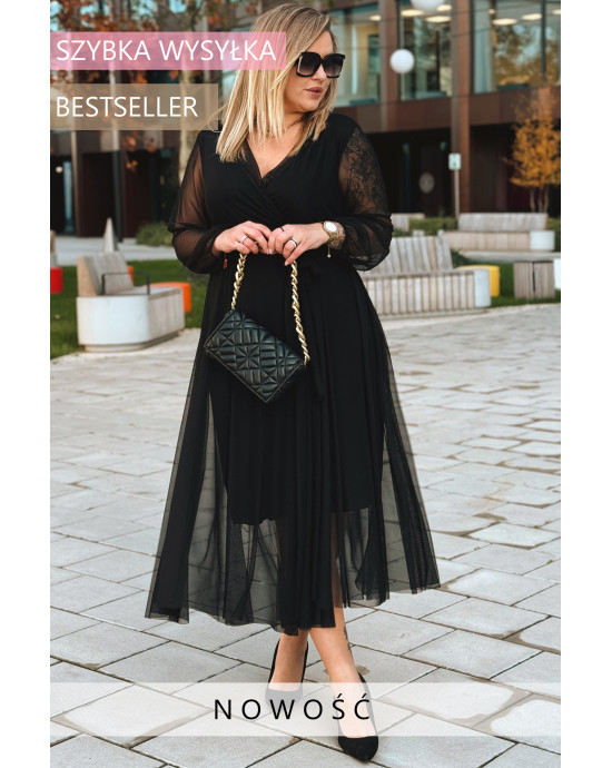 ADRIANA - Długa siateczkowa sukienka, która zachwyca lekkością w kolorze czarnym