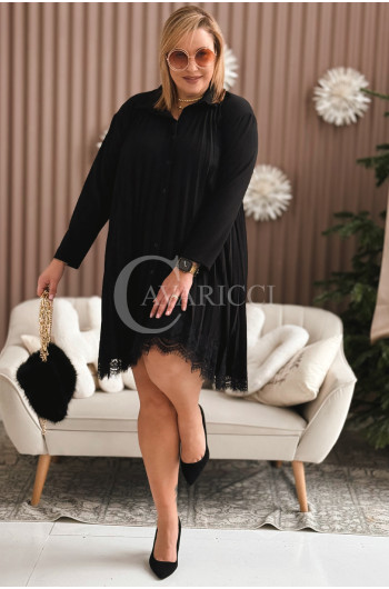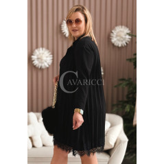 ASTORIA - Elegancka, plisowana tunika z tiulem lekka, kobieca w kolorze czarnym