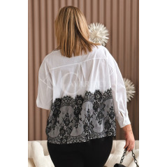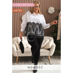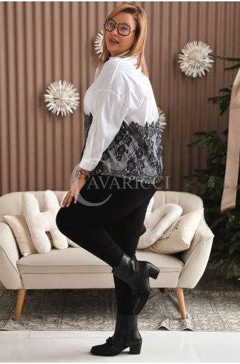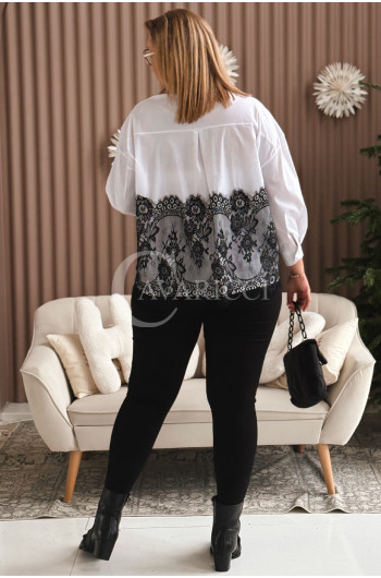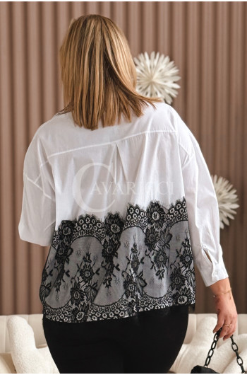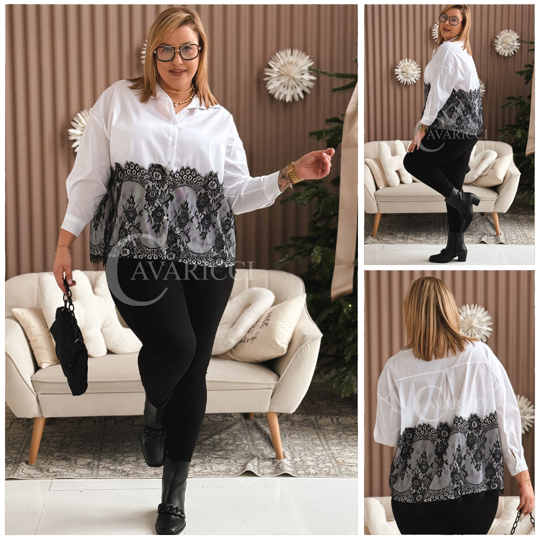 👔 VALENTINA - KLASYCZNA BIAŁA KOSZULA Z CZARNĄ KORONKĄ