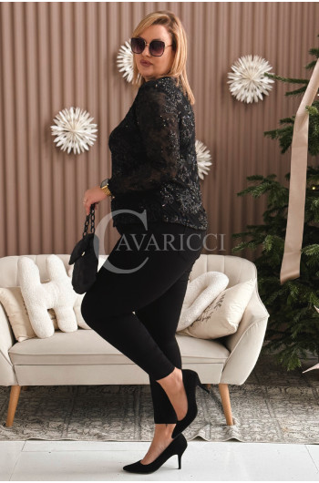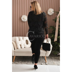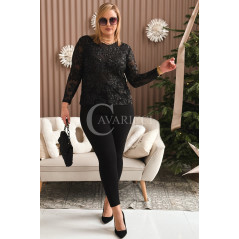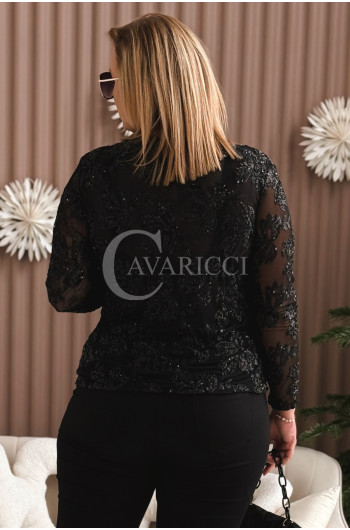 SERAFINA - Bluzka z koronki gipura, kobiecy wdzięk w kolorze czarnym