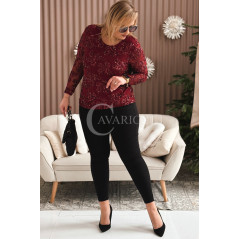 SERAFINA - Bluzka z koronki gipura, kobiecy wdzięk w kolorze bordowym