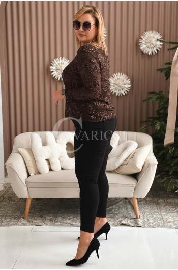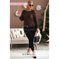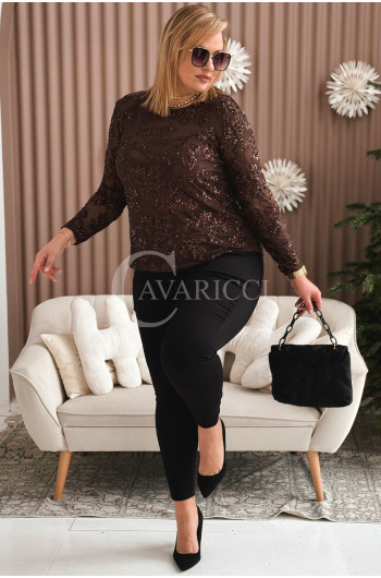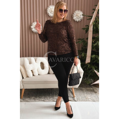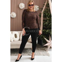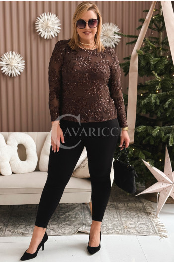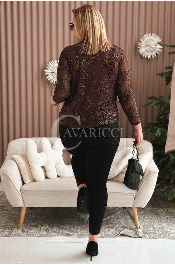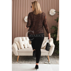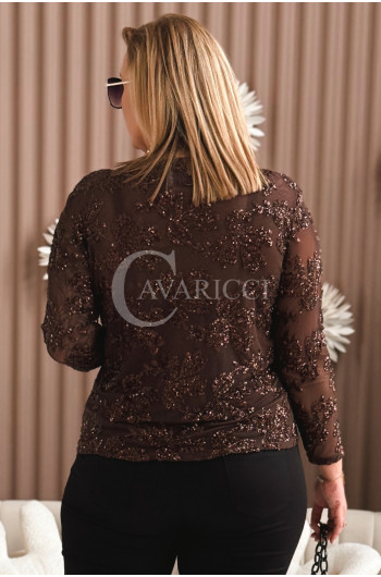 SERAFINA - Bluzka z koronki gipura, kobiecy wdzięk w kolorze brązowym