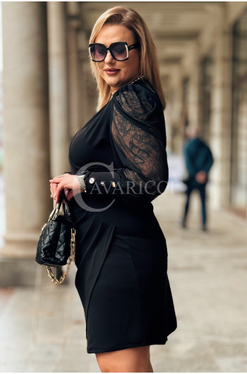 ELEGANZZA - Zachwycająca, elegancka czarna sukienka z siateczkowymi rękawami w kolorze czarnym