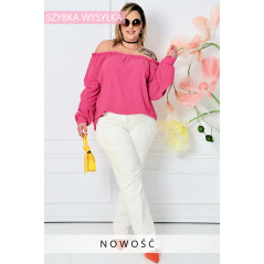 Model AMORE posiada elastyczny dekolt oraz marszczone rękawy, dzięki czemu ładnie dopasowuje się do różnych sylwetek i zapewnia swobodę ruchów.