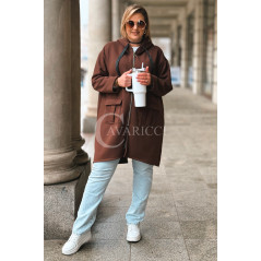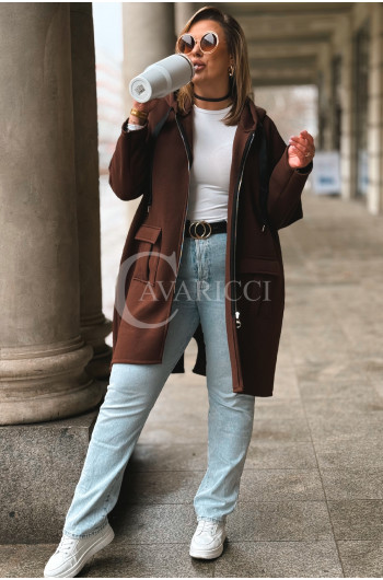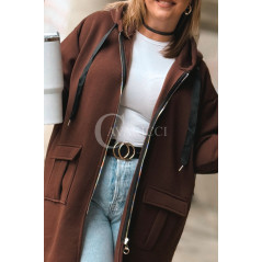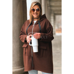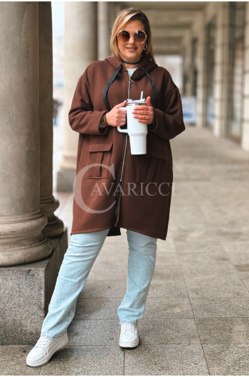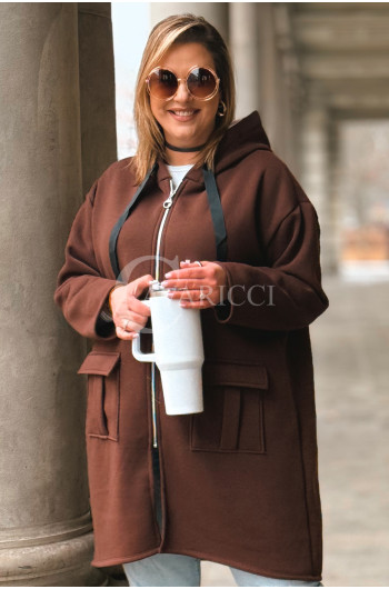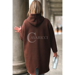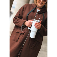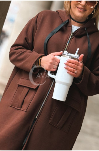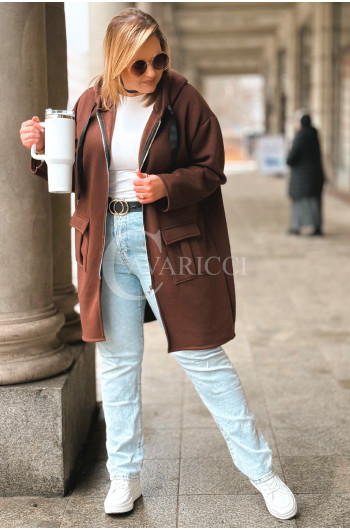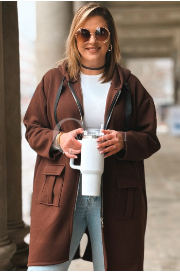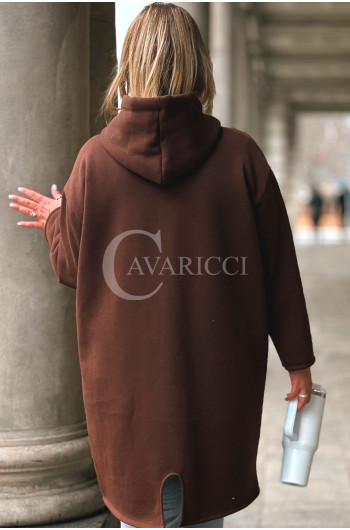 VITA - Długa bluza oversize z kapturem w kolorze czekoladowym