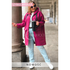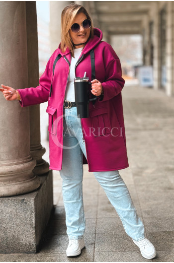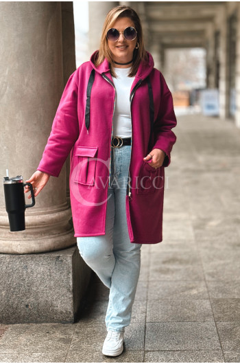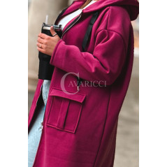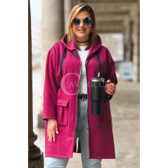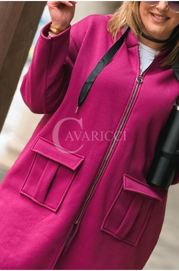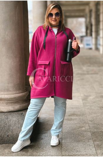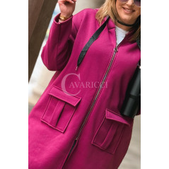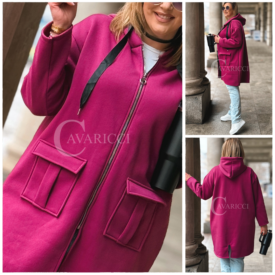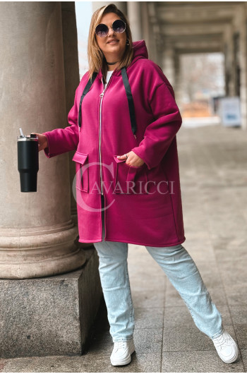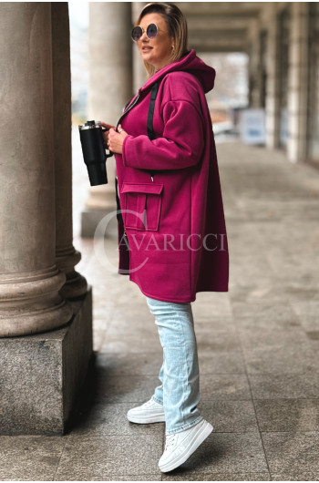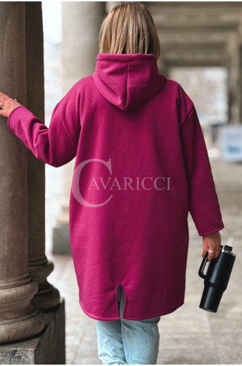 VITA - Długa bluza oversize z kapturem w kolorze fuksji