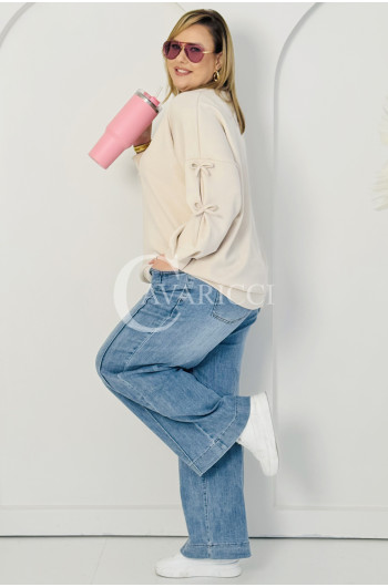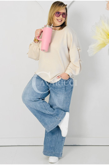 BELLA - klasyczna bluza z kokardkami, łącząca modę i komfort w kolorze beżowym