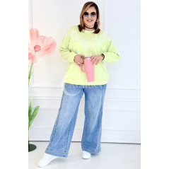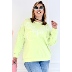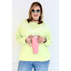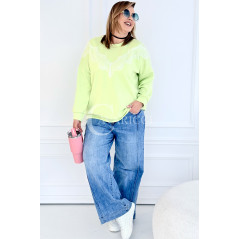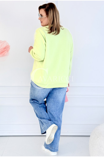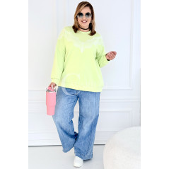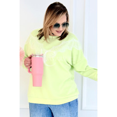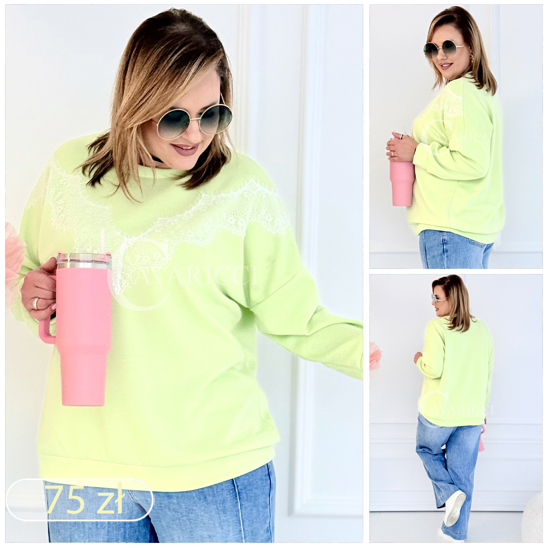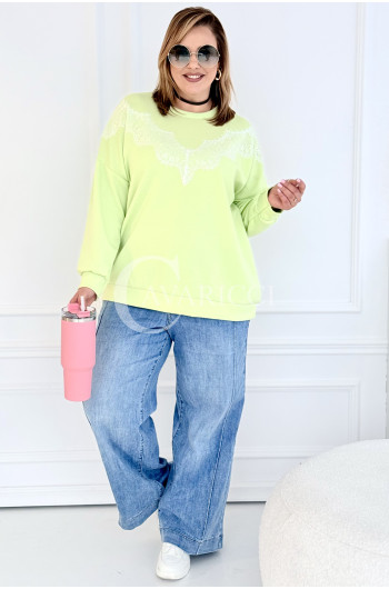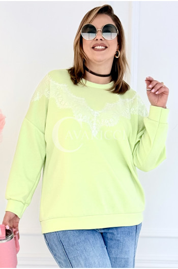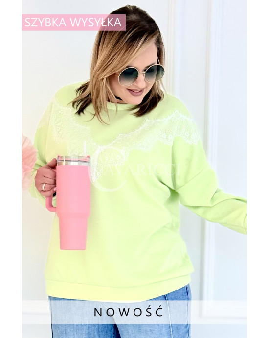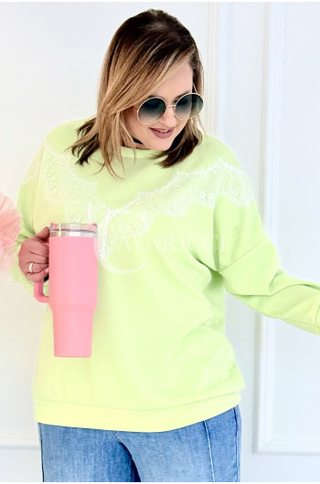 SOLE - Wygodna bluza z długim rękawem i ozdobną koronką w kolorze limonkowym