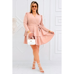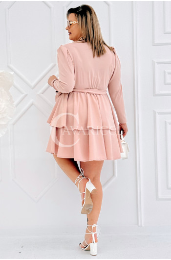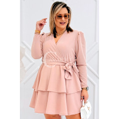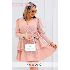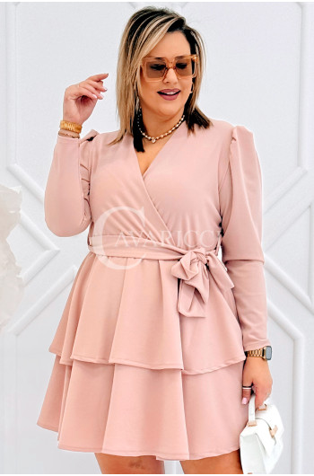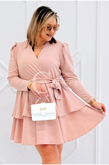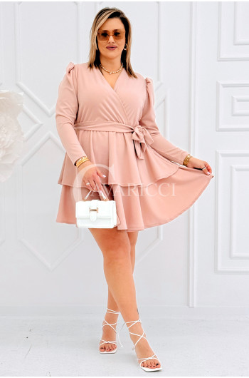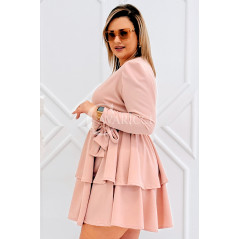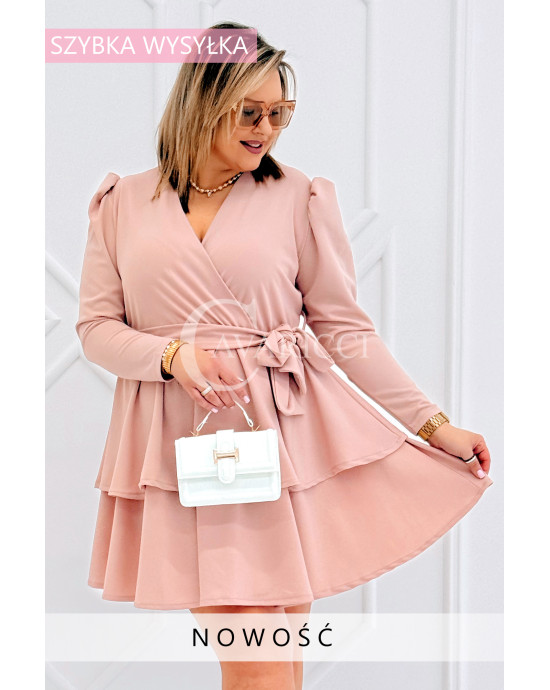 ROSELLA - Kobieca sukienka z falbankami i bufkami w kolorze łososiowym