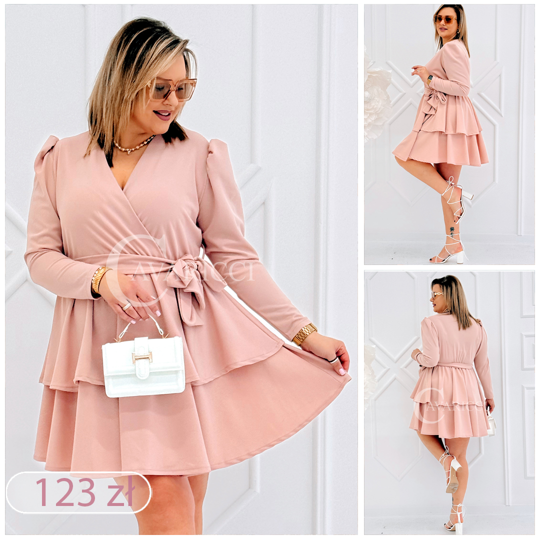 💃 ROSELLA – KOBIECA SUKIENKA Z BUFIASTYMI RĘKAWKAMI I FALBANKAMI