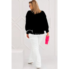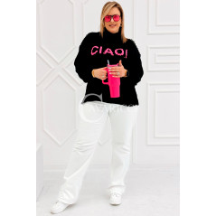 CIAO - Stylowy sweter zdobiony napisem z półgolfem i ozdobnymi przeszyciami w kolorze czarnym