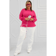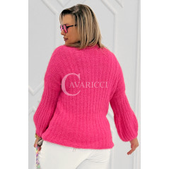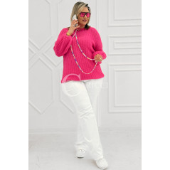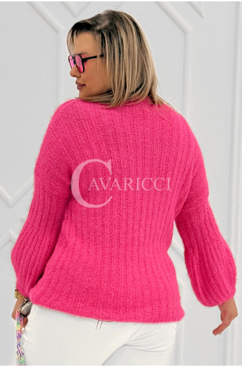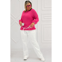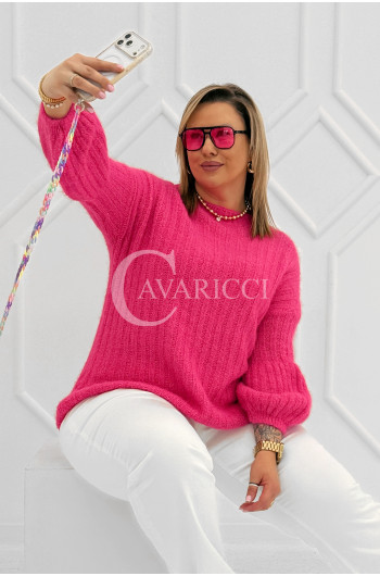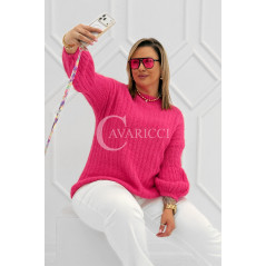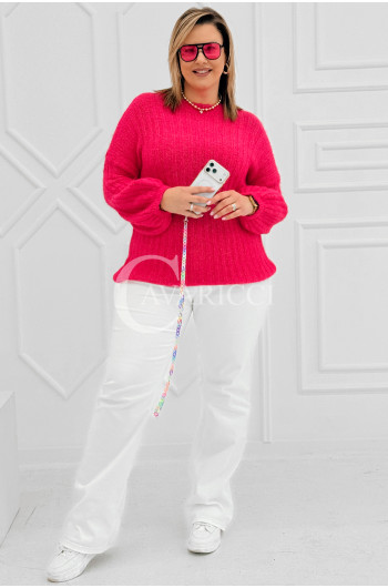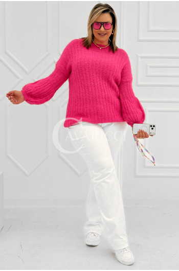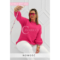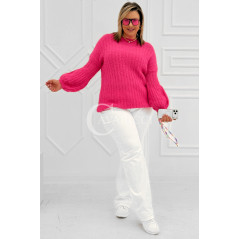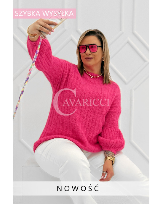 ELINA - Wiosenny sweter z bufkami i subtelnym warkoczykowym splotem w kolorze landrynkowym