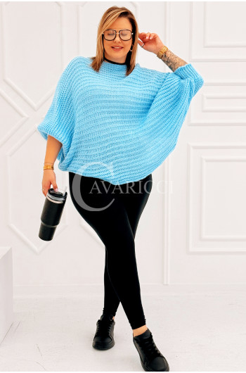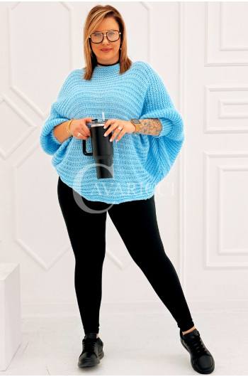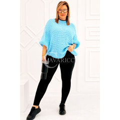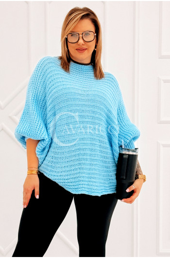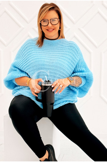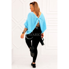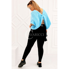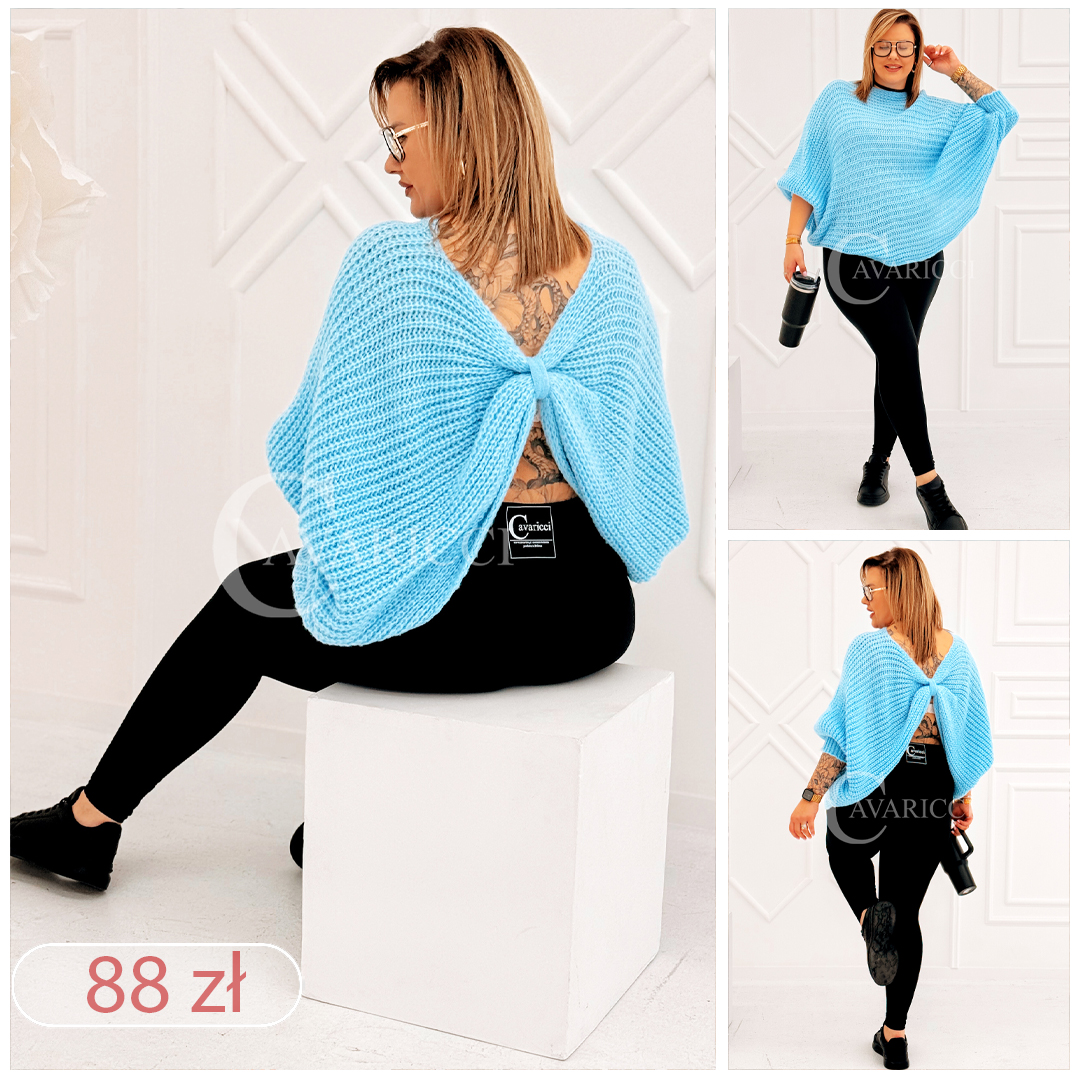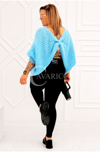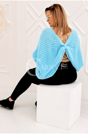 SOFTINA – Sweterek z efektownym splotem i odkrytymi plecami w kolorze błękitnym