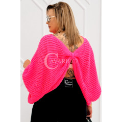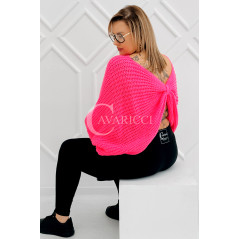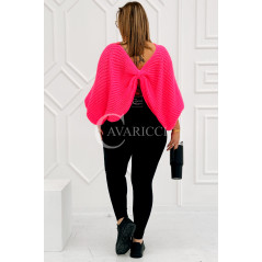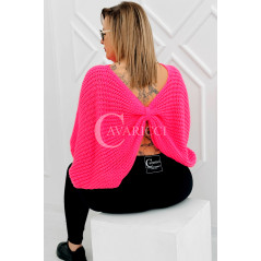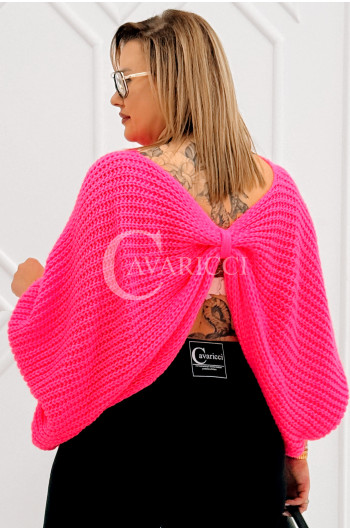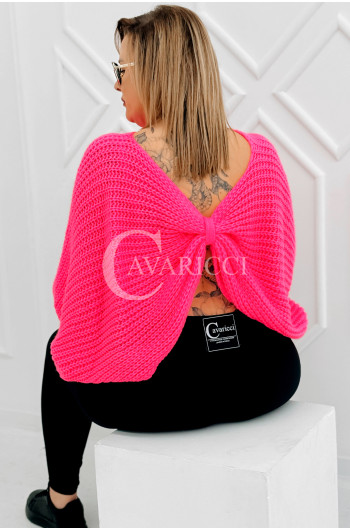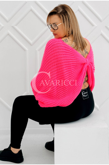 SOFTINA – Sweterek z efektownym splotem i odkrytymi plecami w kolorze landrynkowym