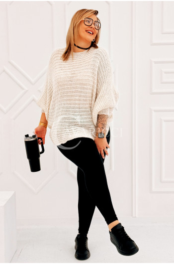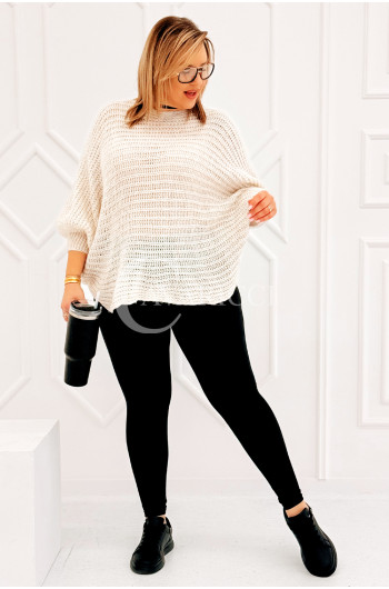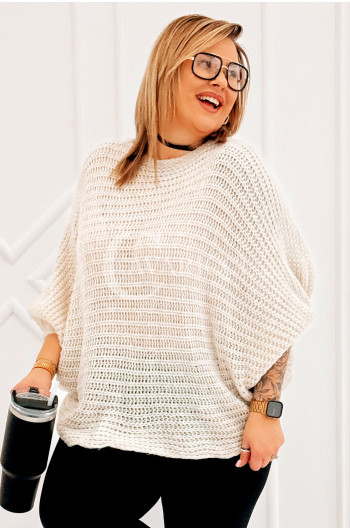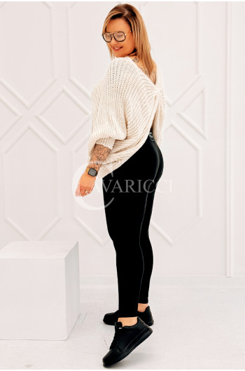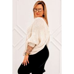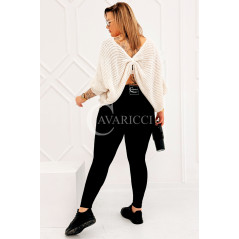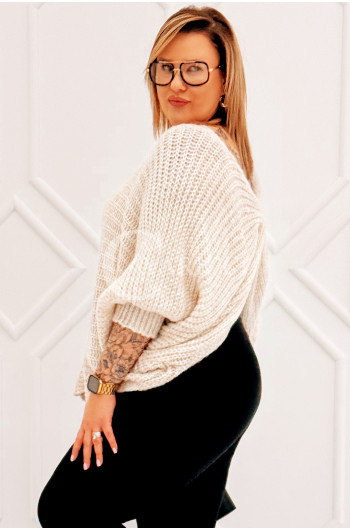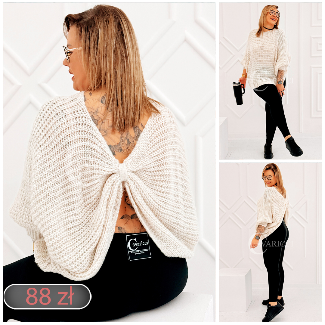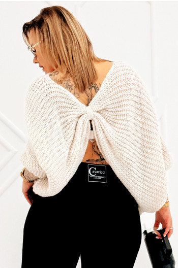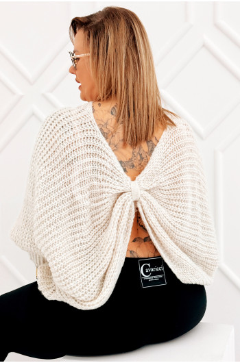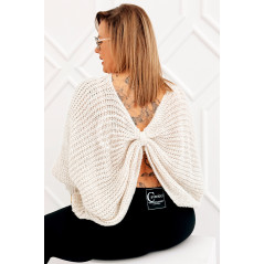 SOFTINA – Sweterek z efektownym splotem i odkrytymi plecami w kolorze beżowym